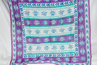 Oscar De La Renta Fashion Scarf in Purple & Turquoise Indian Design. 24" x 24".