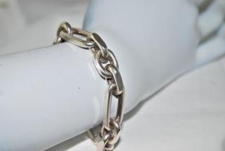 Men's Designer 8 1/2" .925 Sterling Silver Heavy Classic Polished Link Design Bracelet.