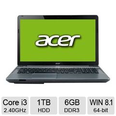 Acer Aspire E17716607 Notebook Intel Core i3-3110M 2.40GHz, 6GB Memory, 1TB HD, DVD-RW, 17.3" Display, Windows 8.1 64-bit. Do more with your computing activities with this Notebook. Intel Core i3-3110M 2.40GHz processor, 6GB DDR3 memory. Featuring a 17.3 in. Display, you can effortlessly watch videos in a 1600 x 900 resolution. 1TB hard disk drive lets you store numerous amounts of videos and photos. Connect easily to any Wi-Fi, Bluetooth, or LAN internet network with its built-in 802.11, Wi-Fi, Bluetooth, 10/100/1000 Gigabit Ethernet LAN connectivity. It is geared with an integrated Intel HD Graphics 4000 card. DVD-RW Drive.