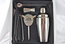 Alpine Cusine Bar Set. Stainless Steel Includes 3 Part Strainning Shaker with Lid, Gigger, Ice Tongs, Strainner and Stirrer. New in Box