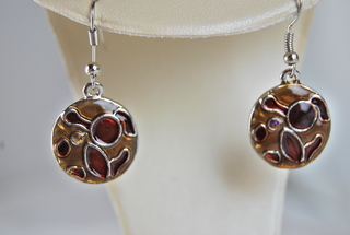 Ladies Designer Amber & Brown Geometric Cloisonne Design Pierced Earrings.