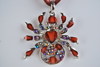 Ladies Designer Amber & Crystal Spider Design Necklace on Ribbon Cord.