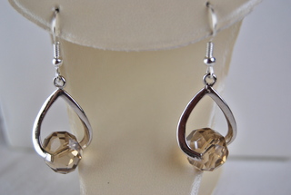 Ladies Designer Pierced Earrings with Amber Crystals & Silver Rondells.