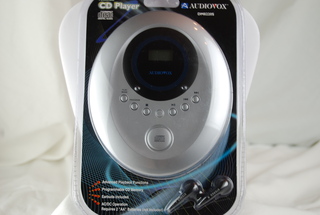 Audiovox Silver Portable CD Player with Stereo Earbuds.