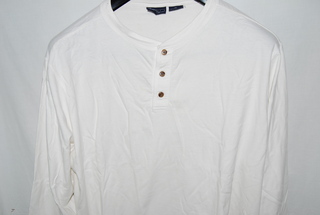 Basic Editions Men's Henley Knit Shirt, White, 3XL, Long Sleeve, 3 Button Crew Collar, 100% Cotton, new without tags,