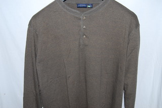 Basic Editions Men's Henley Knit Shirt, 3XL, Long Sleeve, Dark Brown Shirt, 3 Button Crew Collar, 100% Cotton, new without tags,