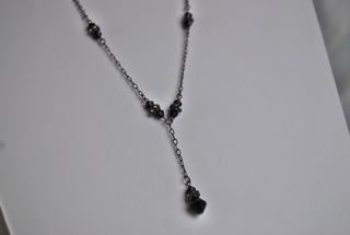 Ladies Designer 20" Black Faceted Beads Necklace on Silver Chain.