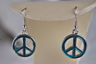 Ladies Designer Blue Peace Sign Design Pierced Earrings.