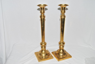 Solid Bronze Large Candle Holders in traditional design, approximately 14" high.