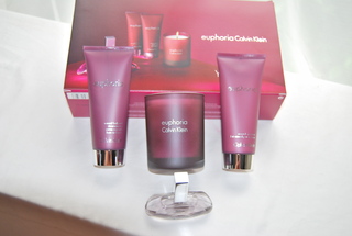 Brand New Calvin Klein Euphoria Womens Perfume Gift Set. Includes a Calvin Klein 5.75 OZ. Euphoria Fragrance Candle, 3.4 OZ Calvin Klein Euphoria Luxurious Body Lotion, Calvin Klein Euphoria 3.4 OZ. Sensual Bath & Shower Creme and Calvin Klein Euphoria .5 OZ. Perfume Spray. Great as a Gift or for Travel. Free Shipping.