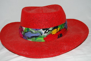 Collectable Designer Straw Hat, Red with Tropical Ribbon Hat Band Design. Adjustable Band, New without Tags.