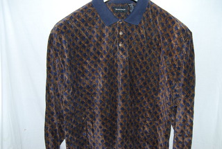 Conte Di Milano Men's Velour Shirt, 2XL, Navy & Brown, Long Sleeve, Button Front, 100% Acrylic, new without tags. SRP:$ 95.00