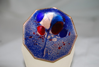Ladies Designer Copper Brooch with Blue Deco Design.