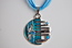 Ladies Designer Blue Crystal & Cloisonne Geometric Design Necklace on Blue Ribbon Rope Cord.