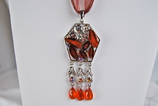 Ladies Designer Brown & Silver with Crystal Geometric Design Necklace on Ribbon Cord.