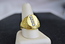 Men's Designer 18k Gold Overlay Ring with 4 CZ stones in a Vertical Design with Hammered Design Band. Size 12.