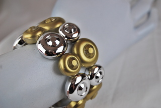 Ladies Designer Silver & Gold Double Row Design Stretch Bracelet