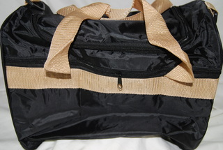 Durable Nylon Duffel Travel Bag, Black with Handles & Shoulder Strap. 14" L x 12" H.