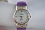 Ladies Eikon Designer Quartz Watch with White Face, Swaroski Crystals and Purple Leather Band.