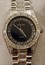 Men's Geneva Silver Tone Bling Quartz Watch with CZ Bezel, Black Face.