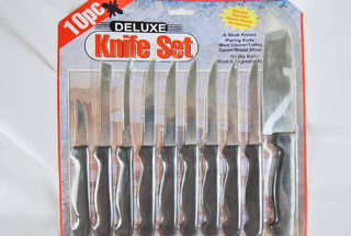 "GINSU" 10 Piece Deluxe Knife Set. Includes 6 Steak Knives, Paring Knife, Meat Cleaver/ Turkey Carver/ Bread Knife, Utility Knife & Fruit / Vegetable Knife.