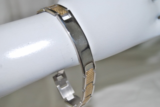 Designer 8 1/4" - 18k Gold & Silver Overlay Etched ID Bracelet.