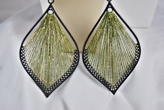 Ladies Designer Gold Metalic Thread on Black Frame Pierced Earrings. 2" x 3".