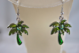 Ladies Designer Green & Crystal Palm Tree Design Pierced Earrings.
