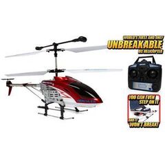 GYRO Hercules Unbreakable 3.5CH Remote Controller Helicopter. This RC helicopter has super strong polymer frame. The Helicopter's body can take up to 200 pounds of force! You can even step on it and it won't break. Features: Super Strong Polymer Body Body Can Take Up To 200 Pounds Of Force LED Lights 3.5CH Built In Gyro Includes: 3.5CH Radio Transmitter Spare Blades Rechargeable Battery Wall Charger Battery Requirements: Transmitter: 3 AA Alkaline Batteries (Not Included)