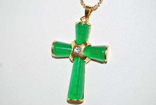 Ladies Designer Natural "Jade" Cross with inlayed Swarvoski Crystal includes 18" Gold-tone Chain.