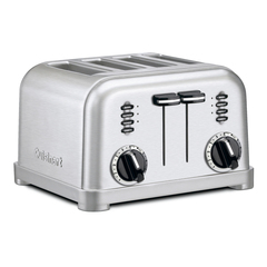 KitchenAid 4-Slice Metal Toaster. 4-slice toaster with manual high-lift lever. Extra-wide, 1.5" slots. Chrome button with blue back-light illumination when in use