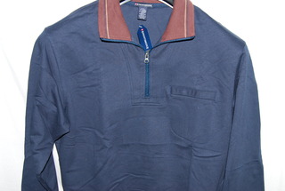 Knightsbridge Men's Pullover Jacket, Medium, Gray with Tan and White Stripe Collar, Zipper Front Pocket, Long Sleeve, 78% Cotton, 22% Polyester, new with tags.