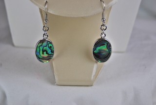 Ladies Designer Natural Abalone Shell & Silver in Oval Design Pierced Earrings.