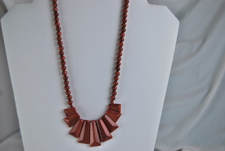 Ladies Designer 17"- "Agate" Gold Stone Metallic Necklace.