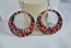 Ladies Designer Red, Pink & Black Glass Beads with Braided Silver Wire Pierced Earrings.