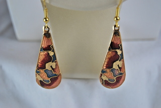 Ladied Designer Cloisonne with Gold Frame Pierced Earrings. 2 1/2" Long.