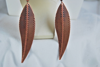 Ladies Designer Hammered Copper Star Design Pierced Earrings. 2 1/2" x 3".