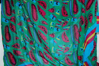 Beautiful Designer Hand Blocked 100% Cotton Scarf with Watermelon Design. Turquoise, Green, Yellow, Black, Purple & Fushia. Can also be used as a Wrap: 45"W x 68"L.