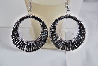 Ladies Designer Black Glass Beads with Braided Silver Wire Pierced Earrings.