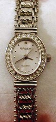Ladies Gruen Designer Quartz Watches, White Face with Diamond Accents and Bezel.