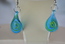 Ladies Murano Hand-Blown Turquoise Blue Pierced Earrings with Green & Gold Swirl Tear Drop Design.