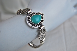 A captivating, ladies sterling silver bracelet, with a bold turquoise stone in the center.