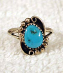 Ladies Sterling Silver Ring with a Turquoise and flower with leaves design. Size 6.