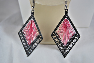 Ladies Designer Gold Thread on Silver Frame Pierced Earrings. 1 1/4" x 2 1/4".