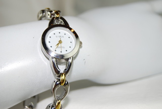 Ladies U-Sea Designer Quartz Two-Tone Bracelet Watch with White Face.