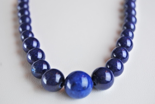 Ladies Designer 18" Lapis Lazuli 6mm to 14mm Round Beaded Necklace.