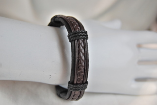Handmade Braided Dark Brown & Black Leather Bracelet.