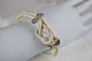 Handmade White Leather Bracelet, "Knot" Design with Silver.