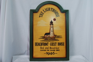 Lighthouse Wall Plaque, Beachfront Guest House, Bed & Breakfast. Serving the Island Since 1946. 36" Tall, 30" Wide.
