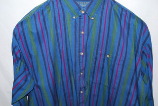 Loafers by Robert James, Men's Designers Button Down Dress Shirt, 2XL, 100% Cotton, Royal Blue Multicolored Stripe Design, No Iron, new without tags.